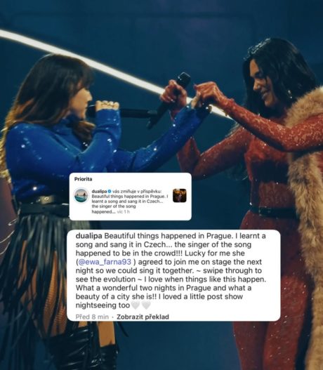 Dua Lipa se rozpovídala o tom, jak se učila česká slova písně Na ostří nože, a o setkání s Ewou Farnou